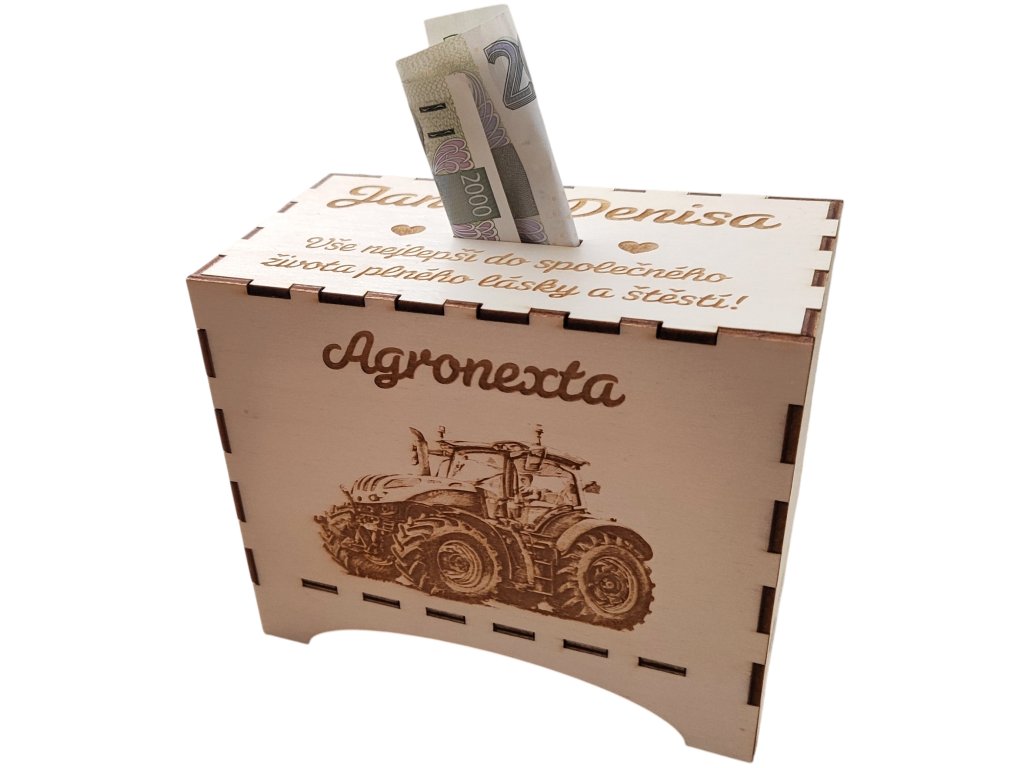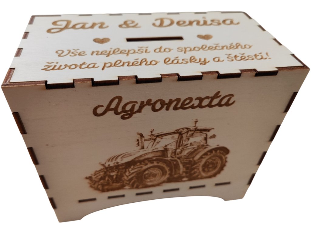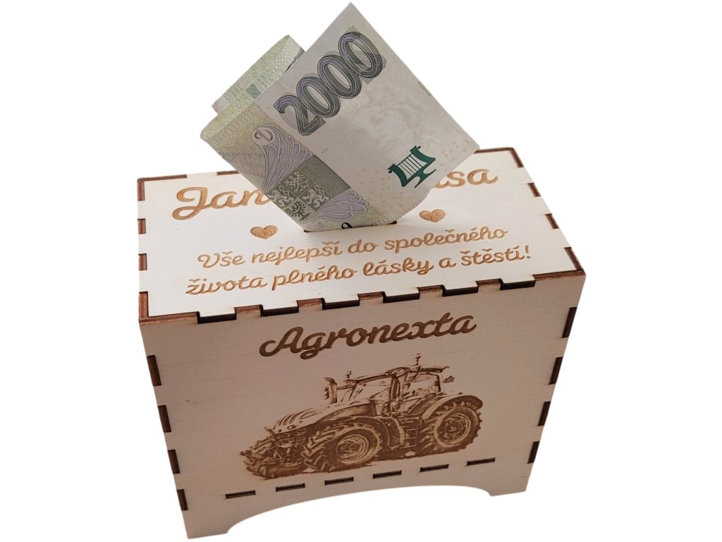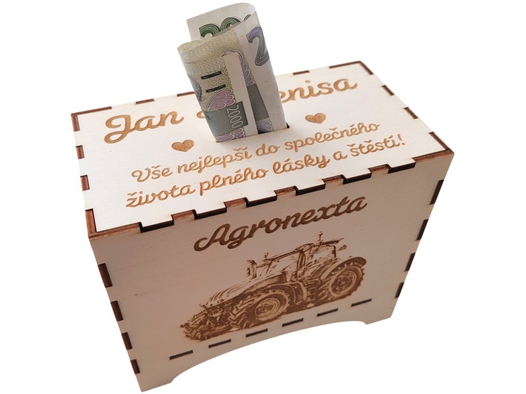 Dřevěná kasička s vlastním textem