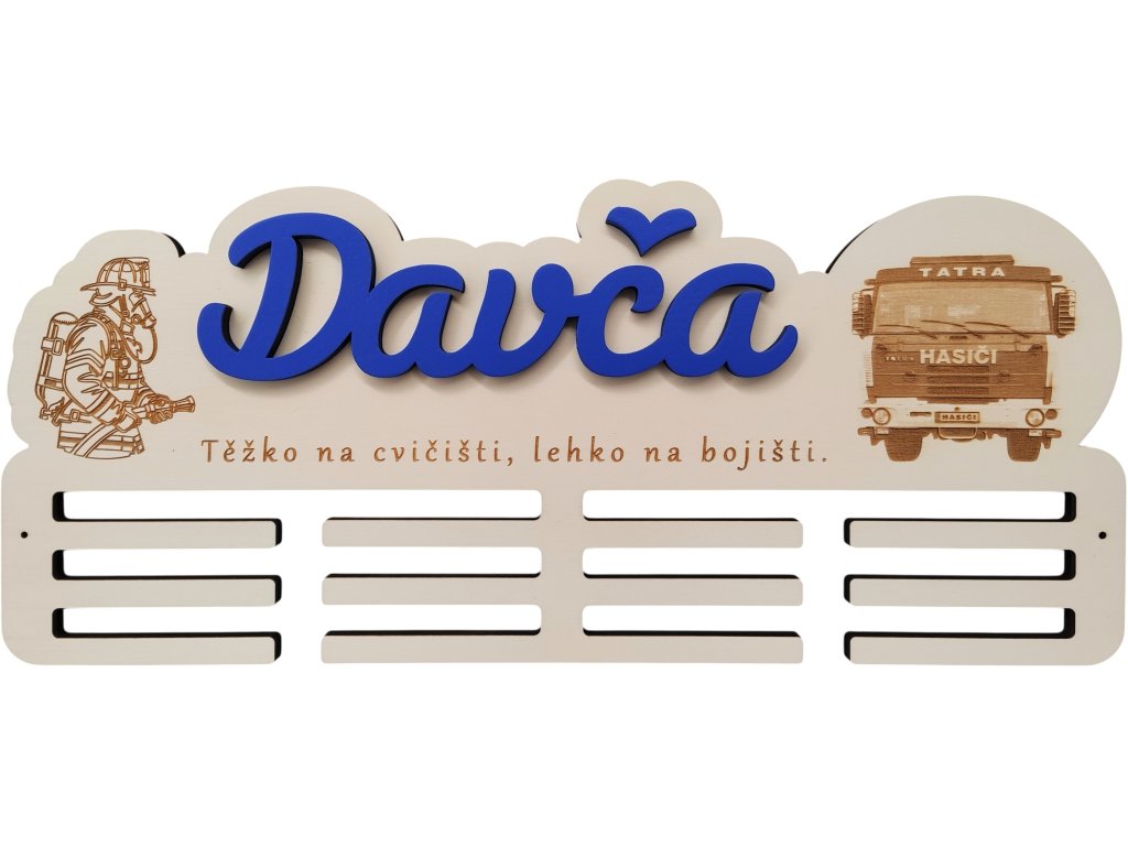 Věšák na medaile s gravírovanou fotkou a jménem je osobní a originální způsob, jak vystavit sportovní úspěchy i vzpomínku, která má hodnotu. Z vaší fotografie vytvoříme gravírovaný motiv přímo do materiálu věšáku – výsledkem je trvalé provedení, které se neodlupuje ani nesloupne a každý kus je díky kresbě dřeva originál.