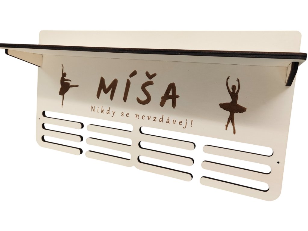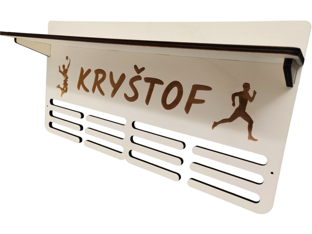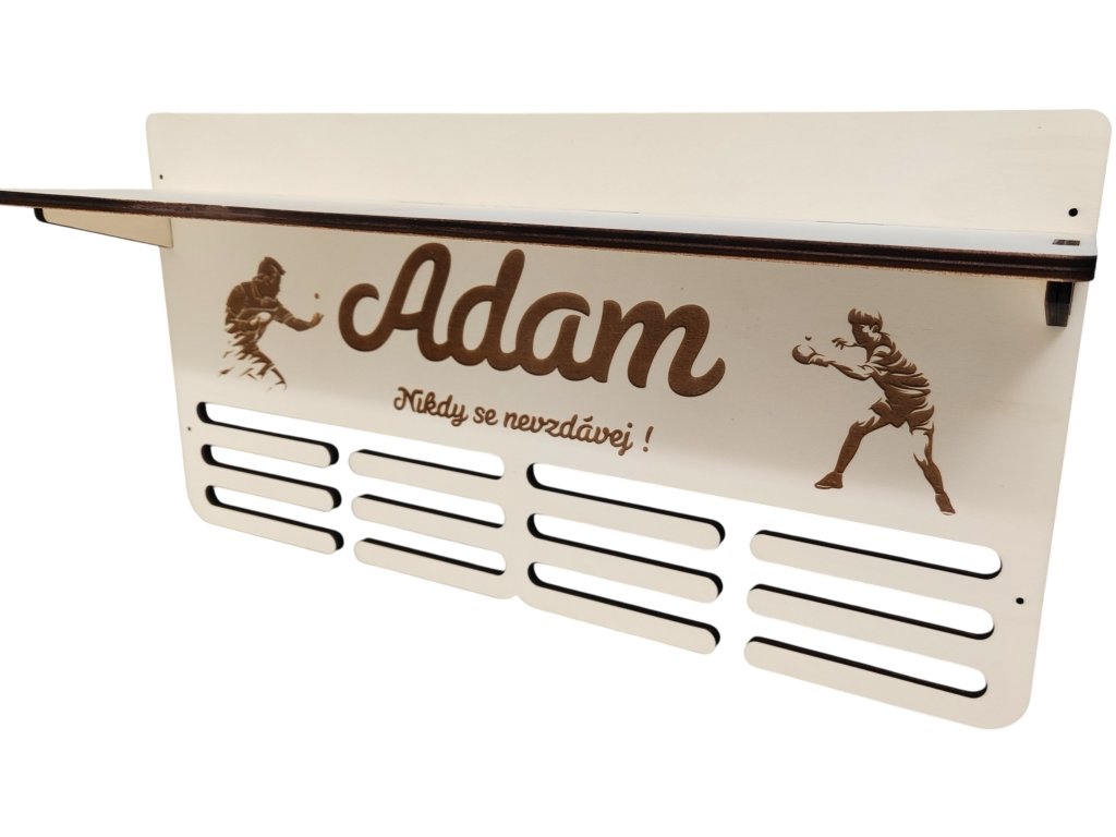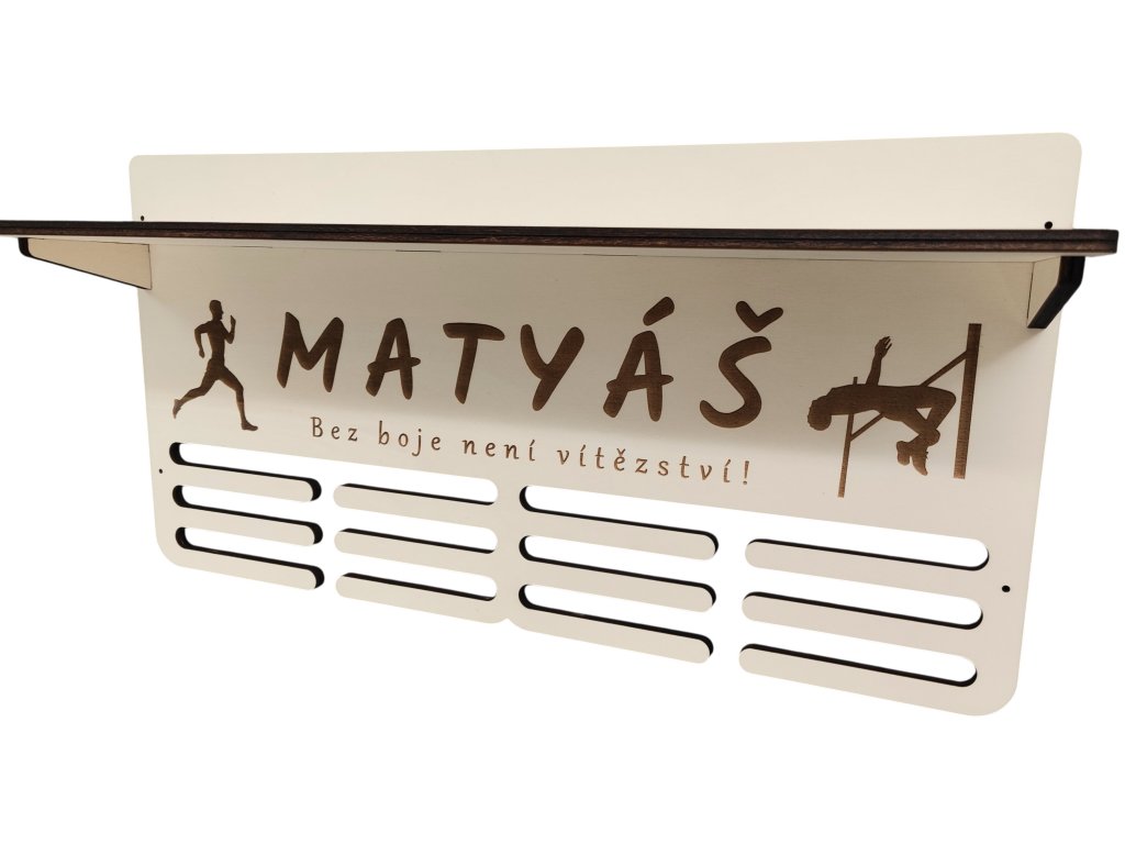 Věšák na medaile s poličkou a vlastním jménem