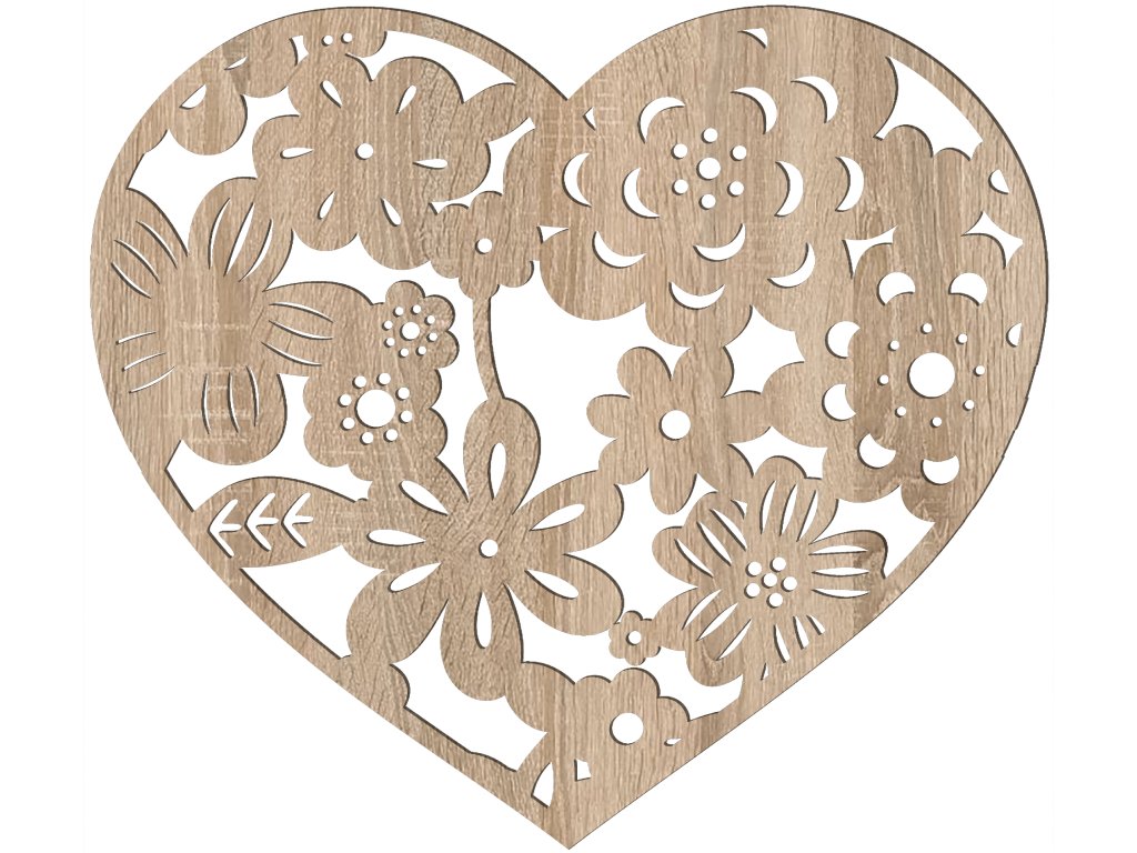 Dekorace na zeď - srdíčko s květinami, DUB SONOMA