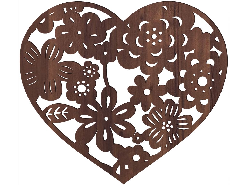 Dekorace na zeď - srdíčko s květinami, OŘECH