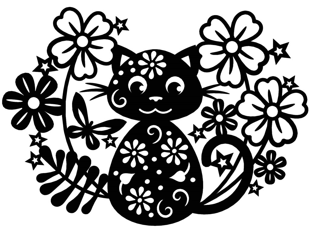 Dřevěná dekorace - kočka s květy, ČERNÁ