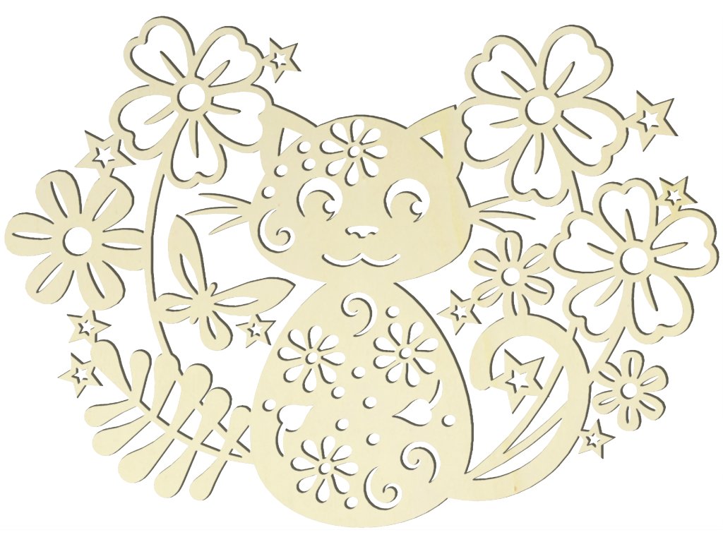 Krásná dekorace vyrobená z kvalitní topolové překližky. Tento jemně vyřezávaný motiv kočky potěší každého milovníka zvířat a dodá domovu útulnou atmosféru.