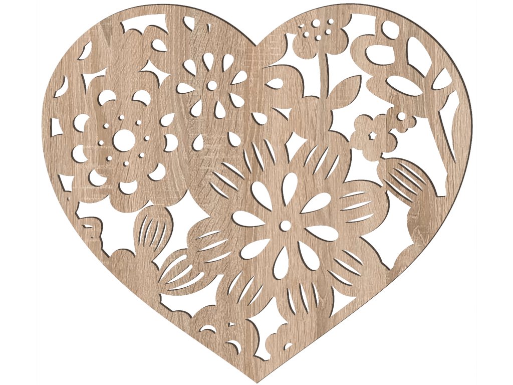 Originální dřevěná dekorace ve tvaru srdce s jemným květinovým motivem, která zútulní každý interiér. Precizní výřezy vytváří lehký a elegantní vzhled, díky kterému dekorace krásně vynikne na zdi, dveřích nebo jako součást sezónní výzdoby.