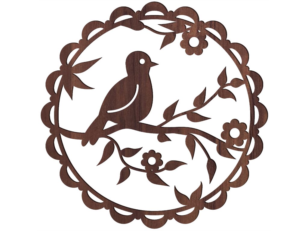Elegantní vyřezávaná dekorace s motivem ptáčka sedícího na rozkvetlé větvičce vnese do vašeho interiéru klid, lehkost a nádech přírody. Jemné detaily květů a listů jsou zasazeny do dekorativního kruhového rámu, který dodává výrobku harmonický a vyvážený vzhled.