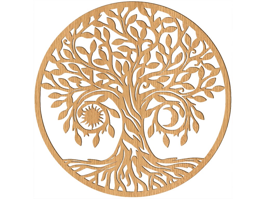 Dřevěný strom života slunce a měsíc - dekorace na zeď, DUB