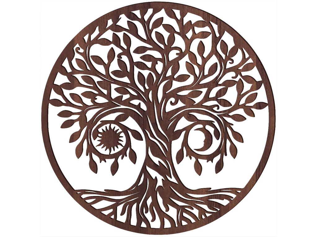 Dřevěný strom života slunce a měsíc - dekorace na zeď, OŘECH