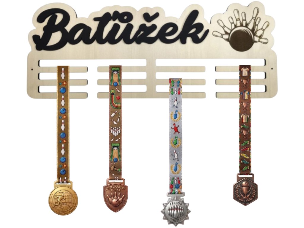 Držák na medaile – dřevěný, vlastní jméno, sport - kuželky