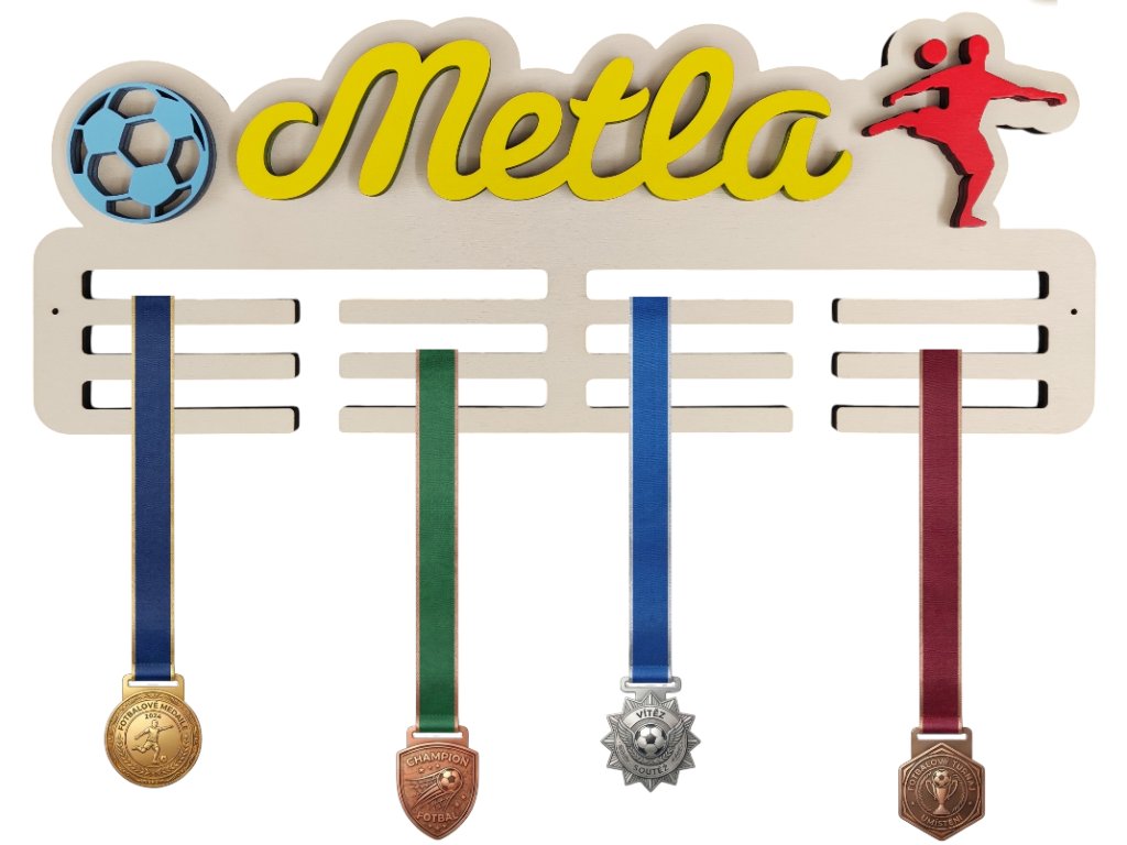 Věšák na medaile – dřevěný, vlastní jméno, sport - fotbal