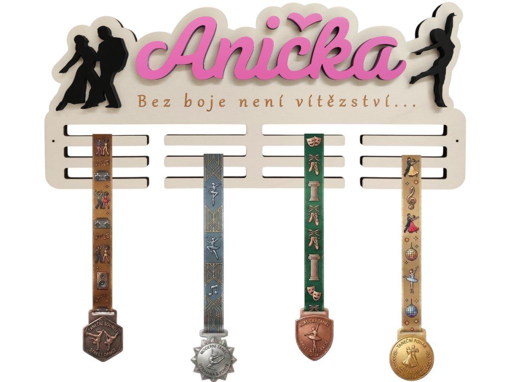 Věšák na medaile – dřevěný, vlastní jméno, sport - tanec