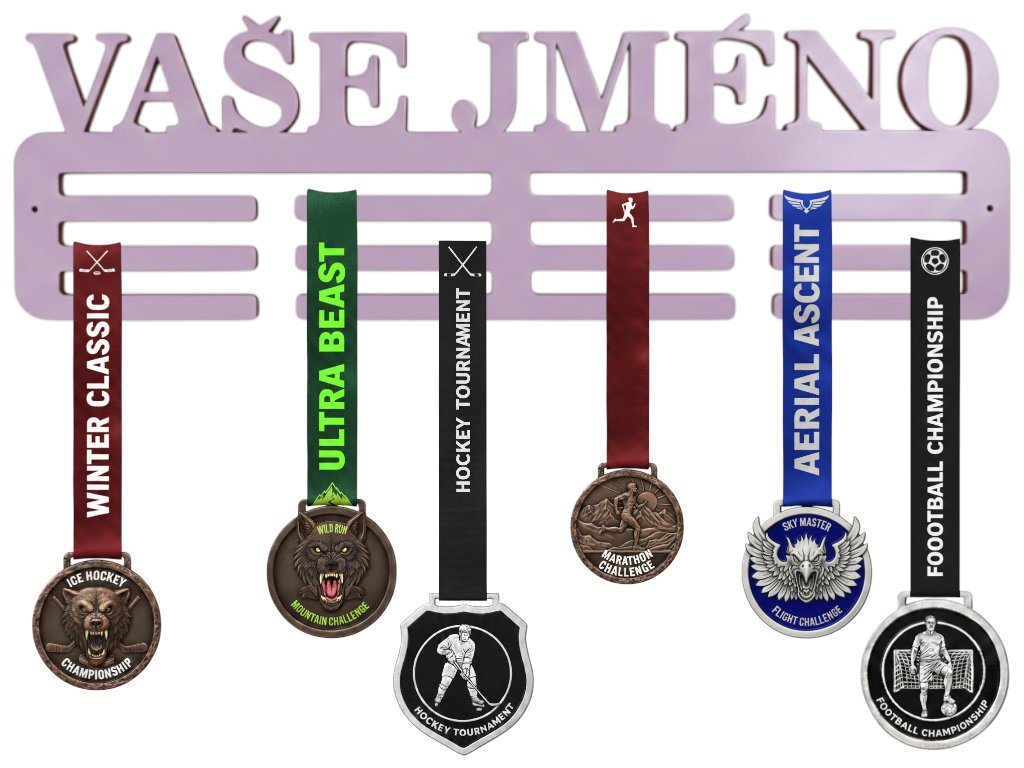 Dodejte svým medailím jemný a elegantní vzhled s levandulovým věšákem na medaile. Tento příjemný pastelový odstín působí harmonicky, svěže a je ideální pro sportovce všech věkových kategorií, kteří chtějí mít své úspěchy krásně vystavené.
