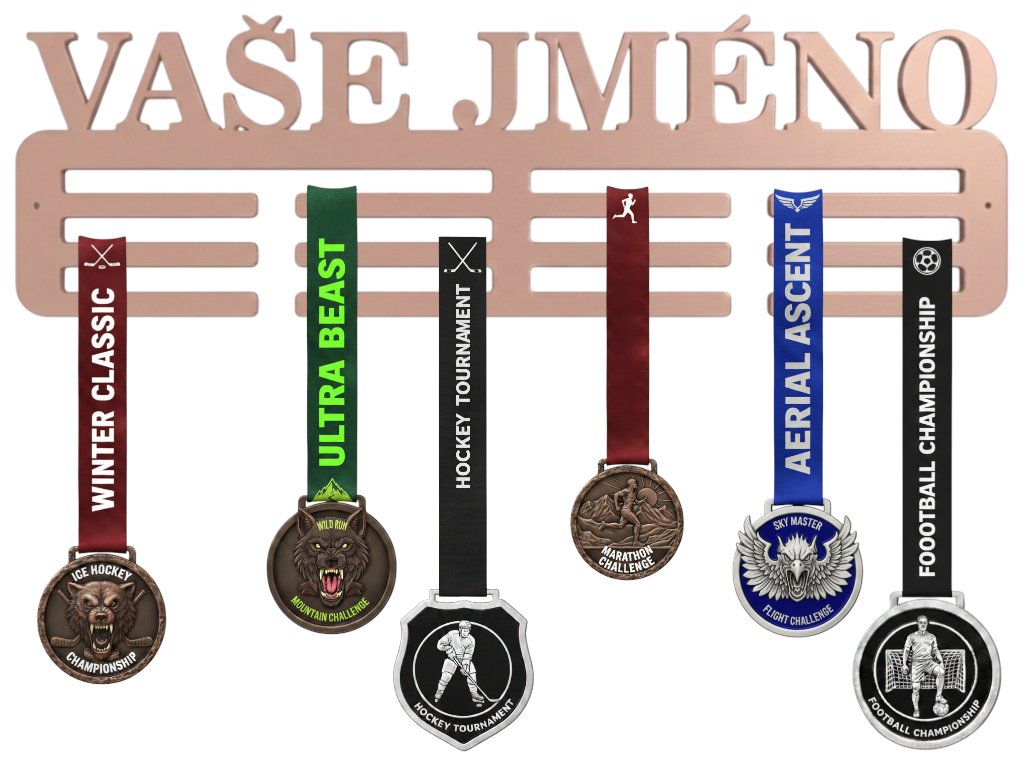 Dodejte svým medailím luxusní a elegantní vzhled s měděným věšákem na medaile. Tento stylový kovový odstín působí prémiově a je ideální pro sportovce všech věkových kategorií, kteří chtějí vystavit své úspěchy opravdu reprezentativním způsobem.