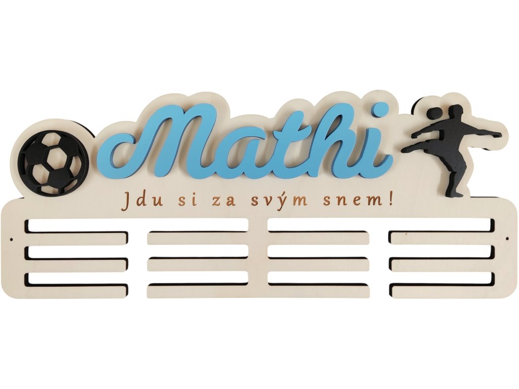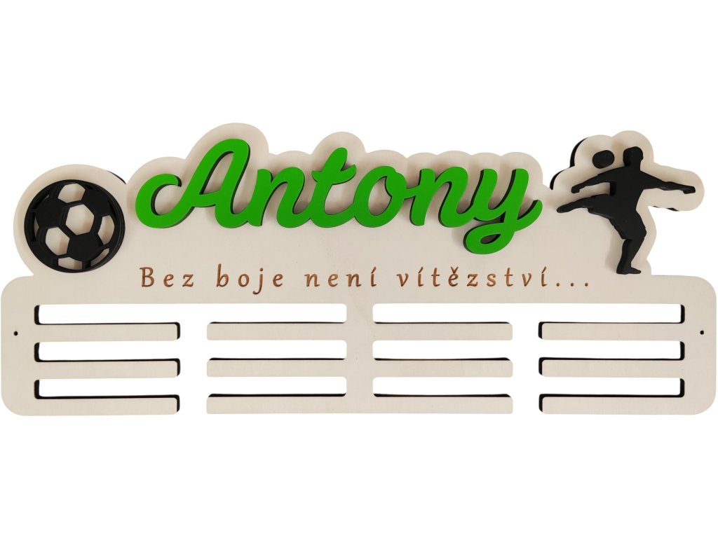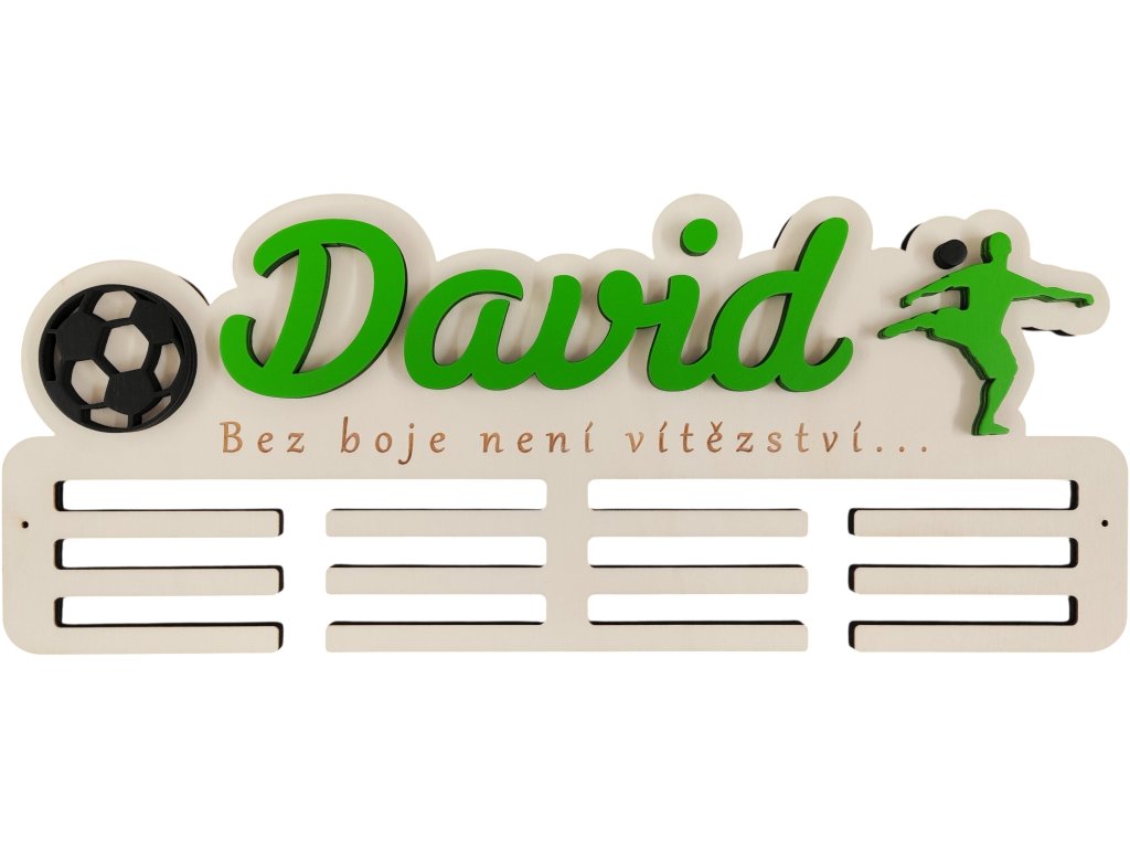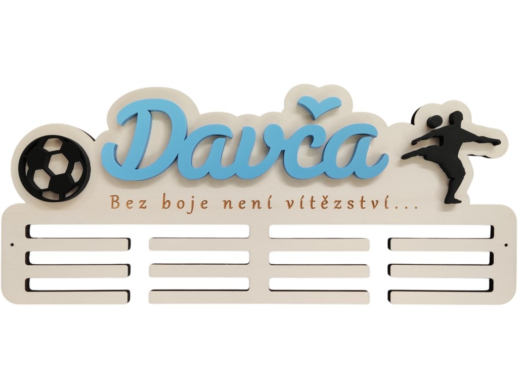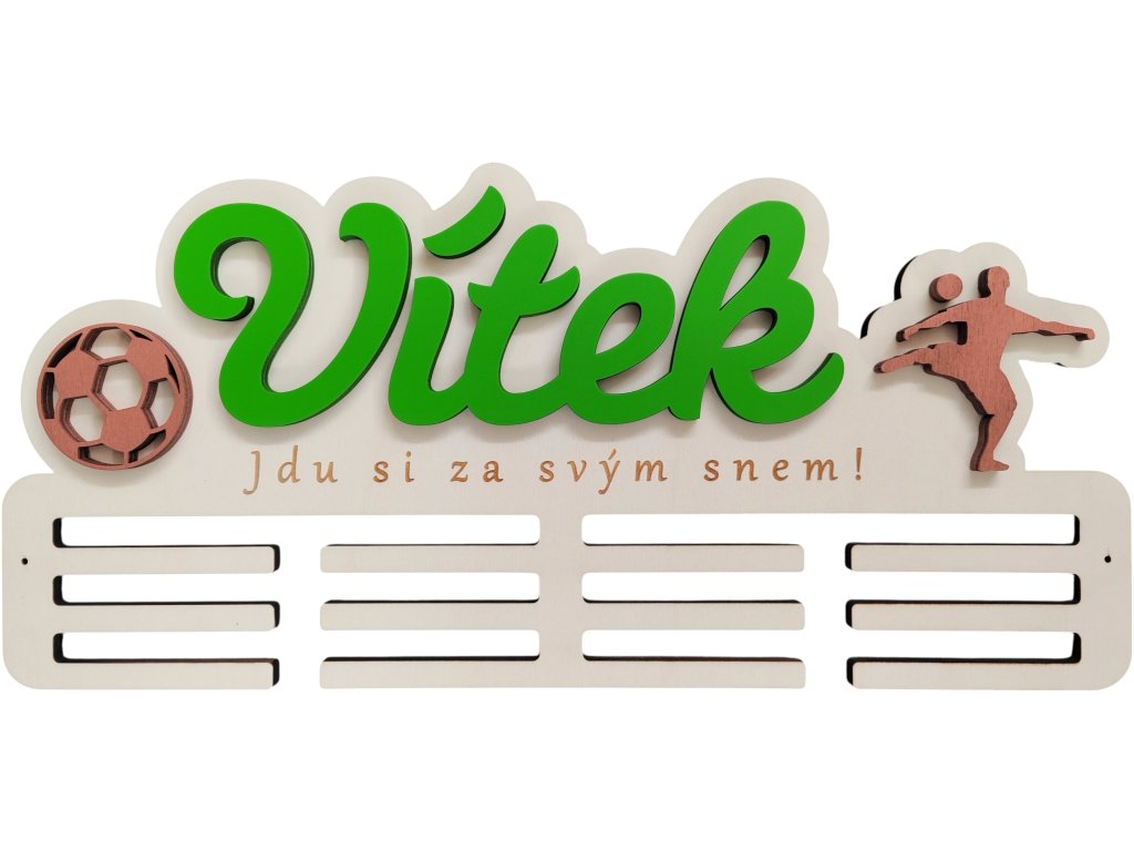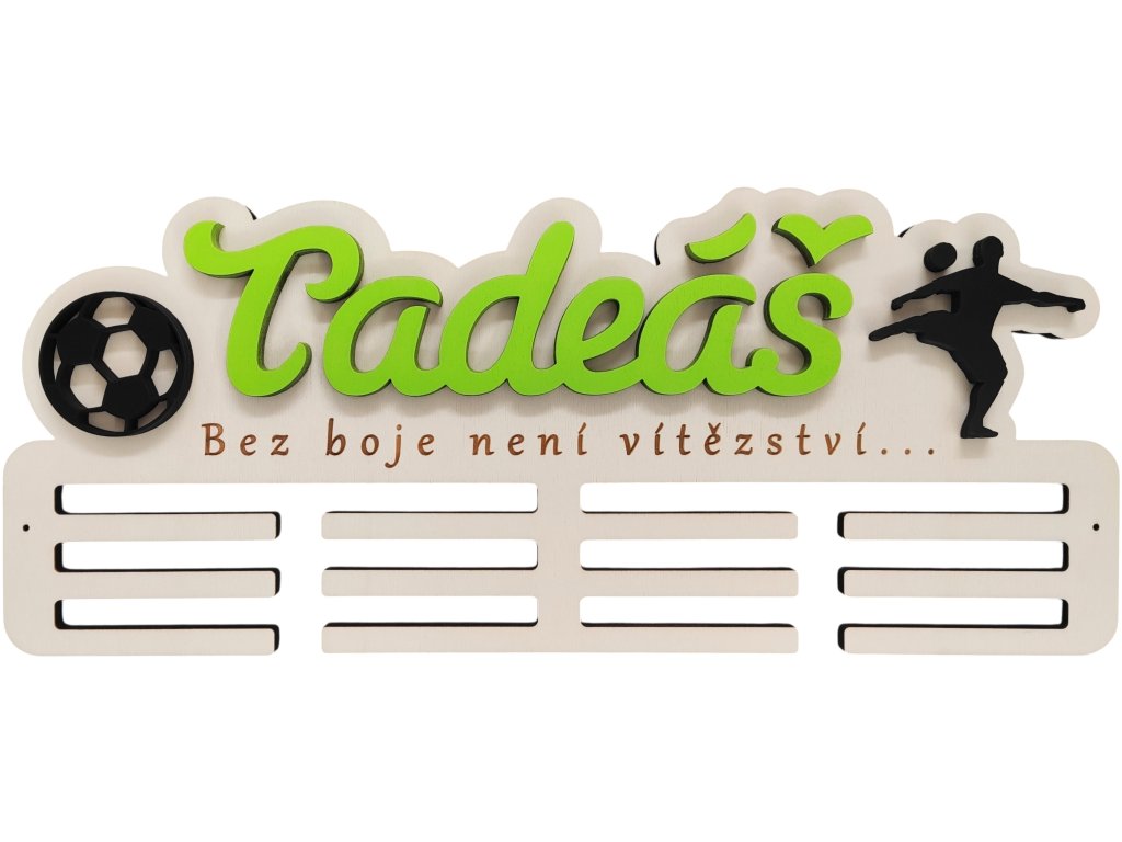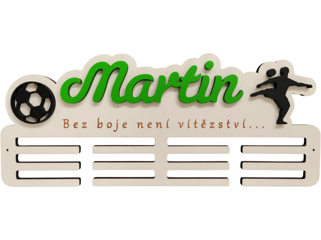 ► Vytvořte si originální věšák na medaile s fotbalovým motivem. Barva jména a siluety dle vašeho výběru. Pokud máte zájem o jiné siluety není to pro nás problém a změníme dle vašich požadavků.