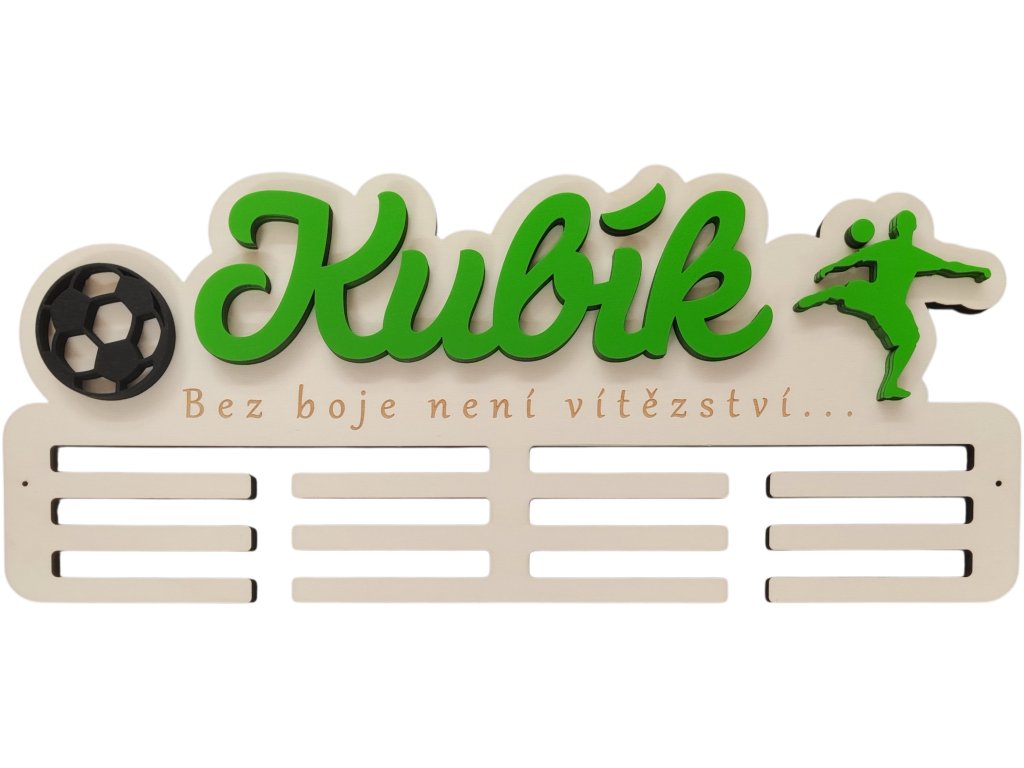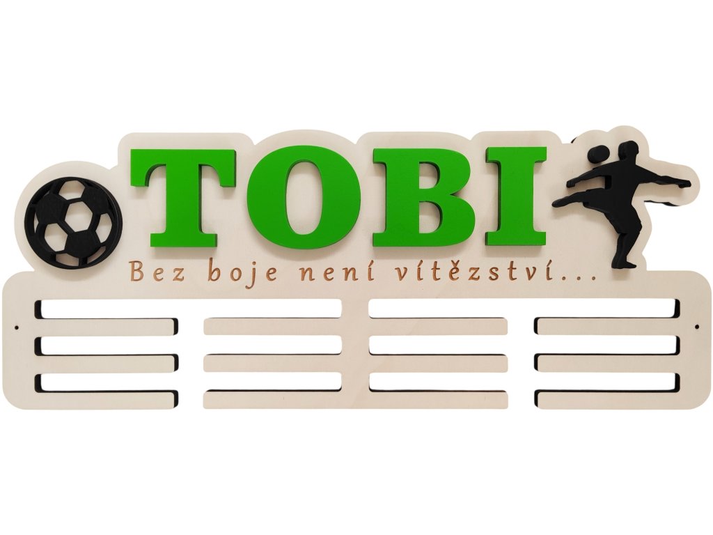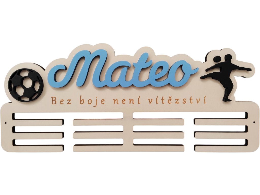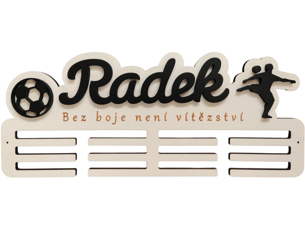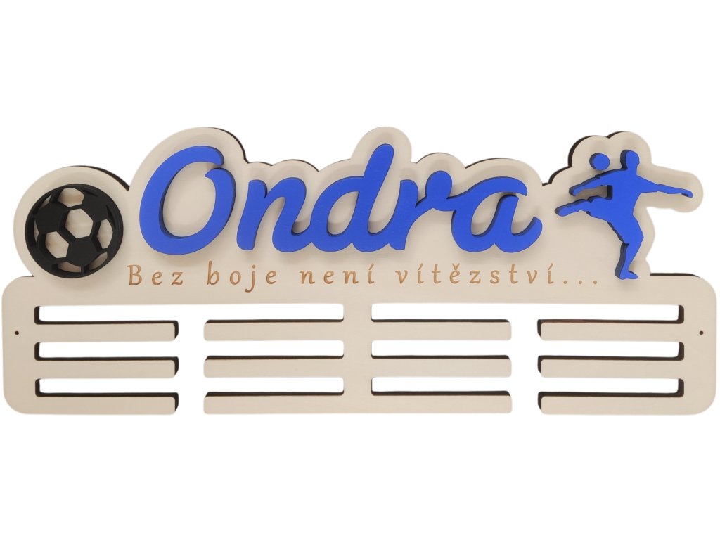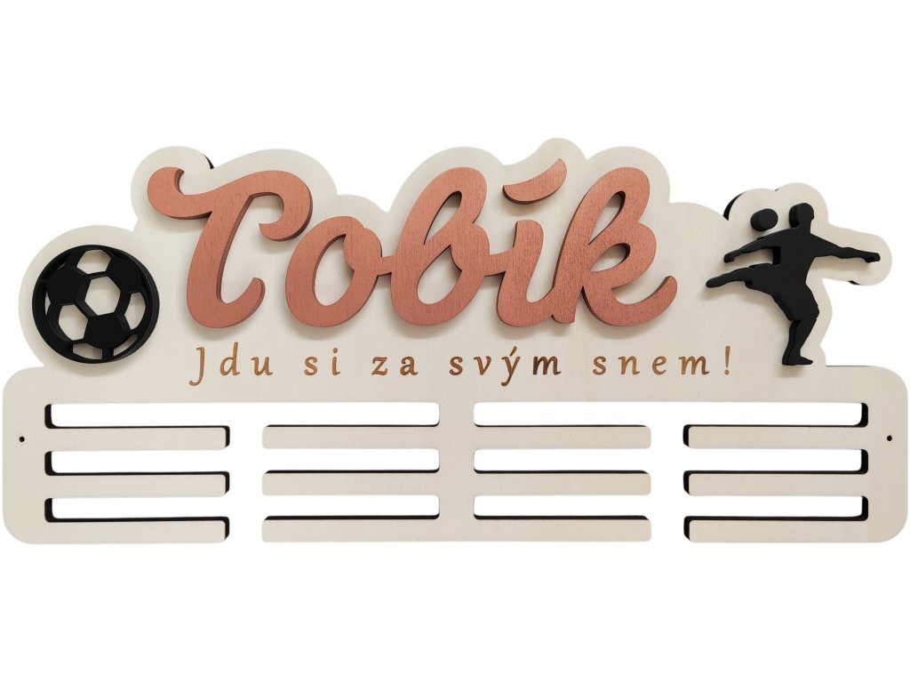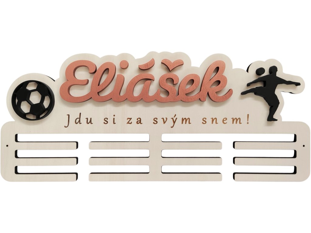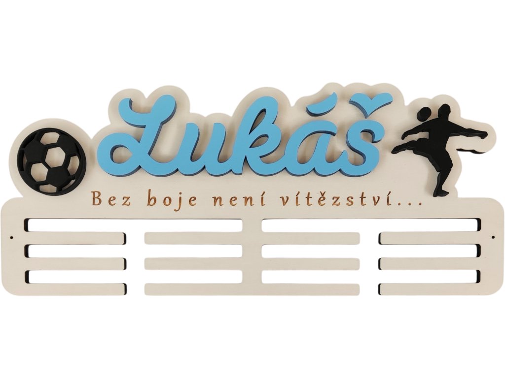► Vytvořte si originální věšák na medaile s fotbalovým motivem. Barva jména a siluety dle vašeho výběru. Pokud máte zájem o jiné siluety není to pro nás problém a změníme dle vašich požadavků.